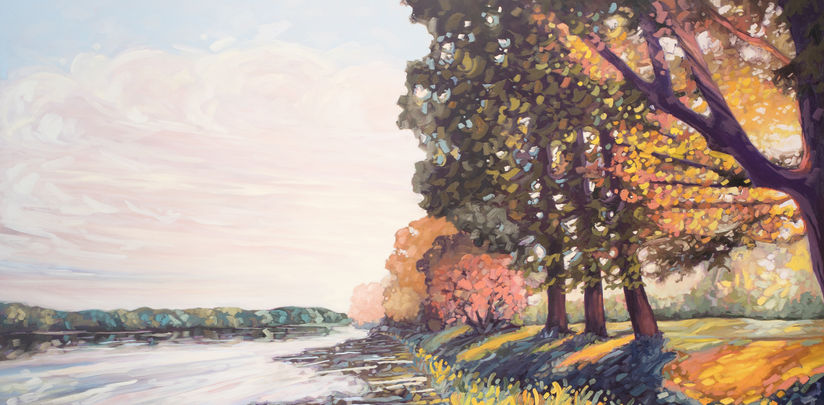 My paintings reflect the joy & aliveness that I experience while adventuring through rural Ontario. I gravitate to trees, country roads and farm fields, which I portray in a playful and impressionistic manner with an emphasis on light, colour and atmosphere.